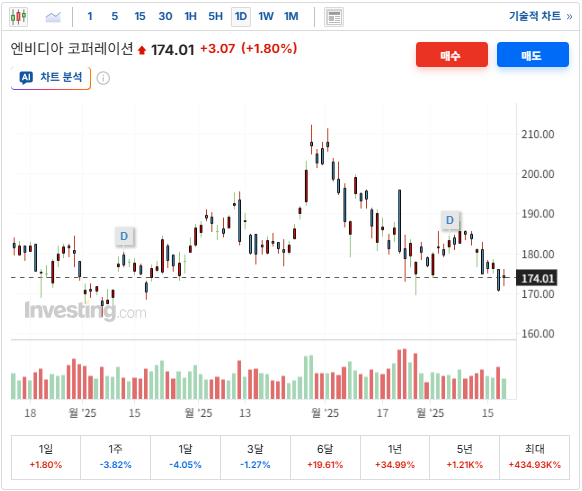 - 최근 몇 주 동안 엔비디아는 고점 대비 17% 이상 조정을 받으며 “AI 버블 논쟁”의 한 가운데에 있었습니다.
