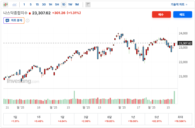 RichFebru 2025. 12. 22. 07:302025년 12월 19일(미국 기준) 미국 증시는 S&P500 +0.9%, 나스닥 +1.3%, 다우 +0.4%로 이틀 연속 강한 반등을 이어갔고, 엔비디아·마이크론·오라클이 이끄는 AI 테크 랠리, 루미나 테크놀로지스 170% 폭등, 나이키 실적 실망에 따른 급락이 동시에 나온 전형적인 ‘AI 재부각 + 종목 장세’ 하루였습니다.