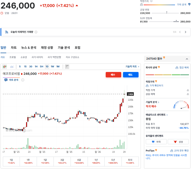 - 보도에 따르면 에코프로비엠은 24만 원대 중반까지 오르며 4~9%대 상승률을 기록했습니다.