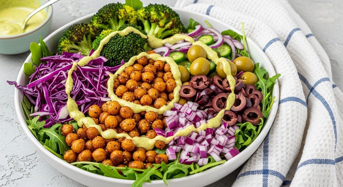 고소한 병아리콩과 신선한 채소, 간단한 드레싱만으로 완성하는 샐러드볼! 바쁜 아침, 점심 도시락, 다이어트 식사까지 두루 활용 가능한 한끼 요리입니다.
