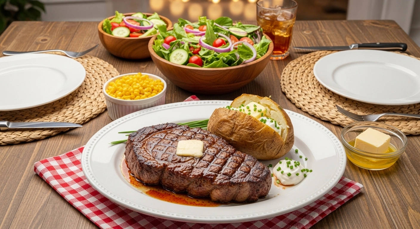 미국 가정의 저녁 풍경에서 흔히 볼 수 있는 것이 스테이크나 구운 고기입니다.