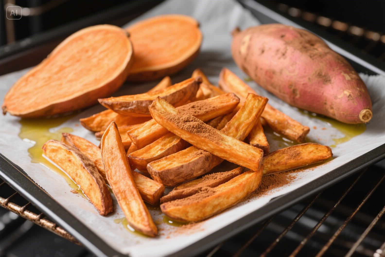 재료: 고구마 2개, 올리브유 1큰술, 계피가루 약간