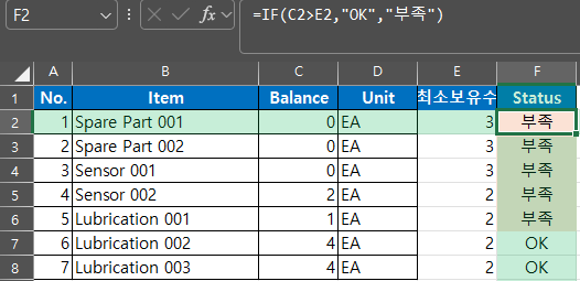 실무에서는 단순 숫자보다 “일치 / 부족 / 초과” 같은 글자가 더 직관적입니다.