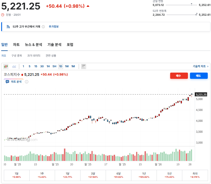 1월 29일(한국 기준) 국내 증시는 또 한 번 기록을 갈아치웠습니다.
