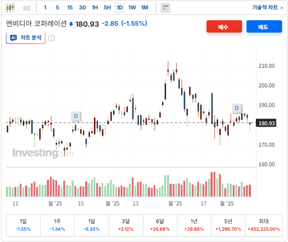 - 오라클의 실적 쇼크 이후, 엔비디아 역시 약 3%대 하락을 기록했습니다.