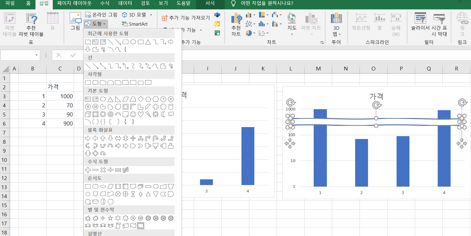 💡 엑셀에서 로그 축 적용하기