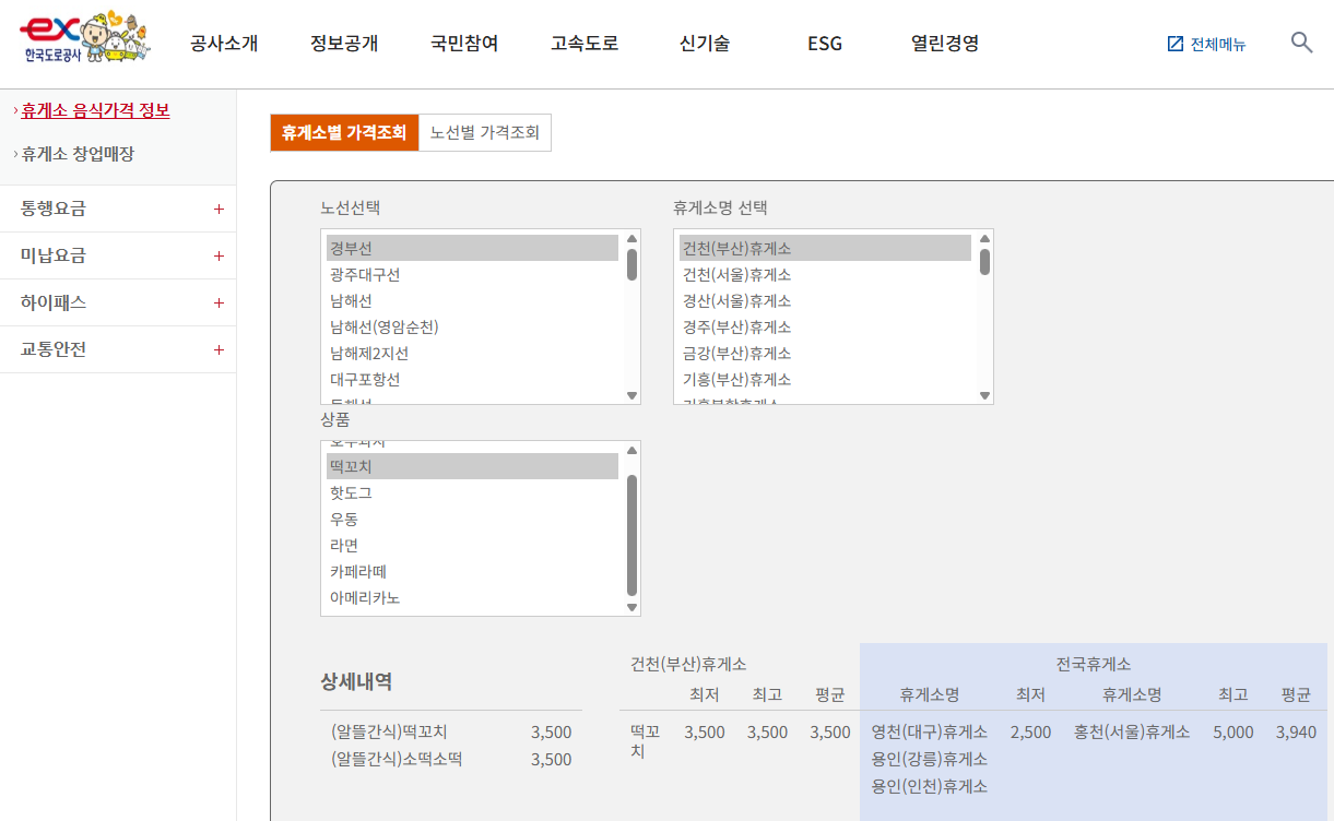 - 휴게소 음식가격 정보도 아래 사이트에서 미리 조회할 수 있습니다.