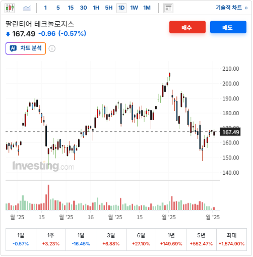 2) 팔런티어(PLTR) – 고점 대비 약 20% 쉬어가는 구간
