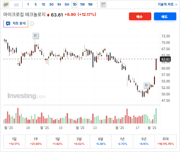 - MCHP는 12.2% 급등, S&P500 내 상승률 1위를 기록했습니다.