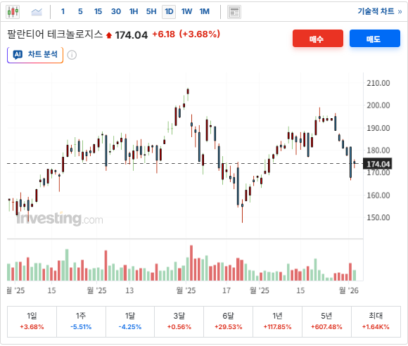 - 정부·국방·AI 계약 수주 뉴스가 이어지며 “실제 매출이 따라오는 AI 플레이”로 재부각.
