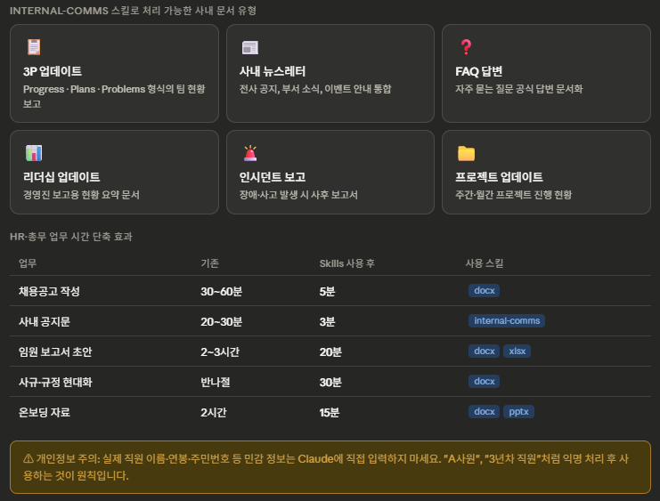 Claude Skills 완전 정복 – 4일차: HR·총무·경영지원 편 (internal-comms·docx·xlsx 실전 활용)