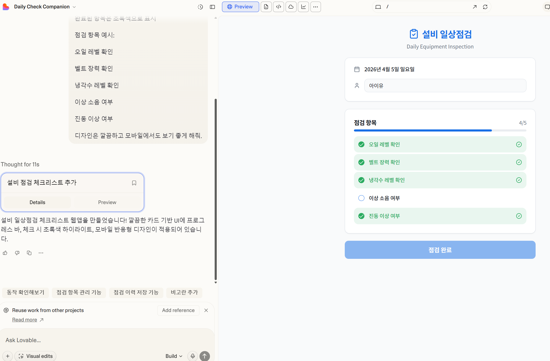 오늘 우리가 만들 것: 설비 점검 체크리스트 웹앱
